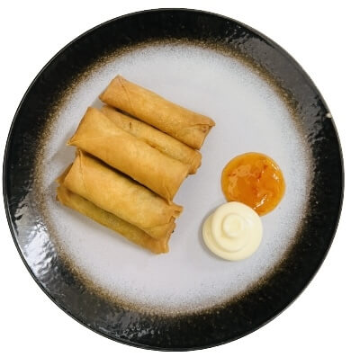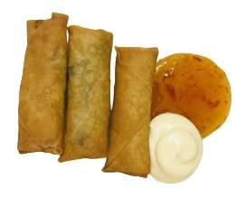 Deep fried spring roll with sweet chilli sauce and mayonnaise