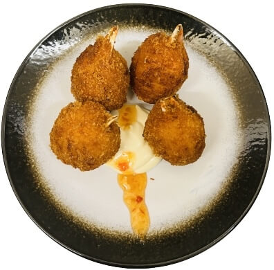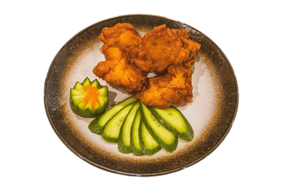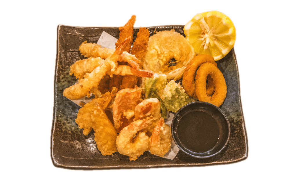 Deep fried prawn 4pcs, Deep fried calamari 2pcs, Vegetable 4pcs, Karaage chicken 2pcs
