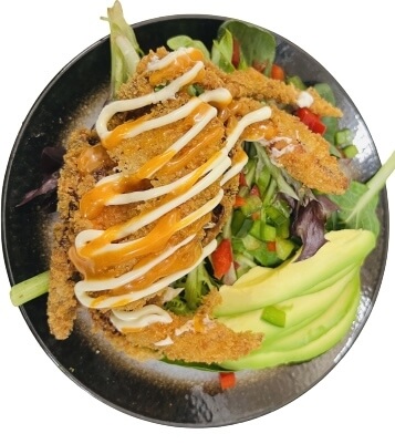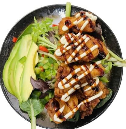 8pcs katsu roll- japanese chicken shnitzel, avocado and cream cheese with mayonnaise + 8pcs Chicken karaage