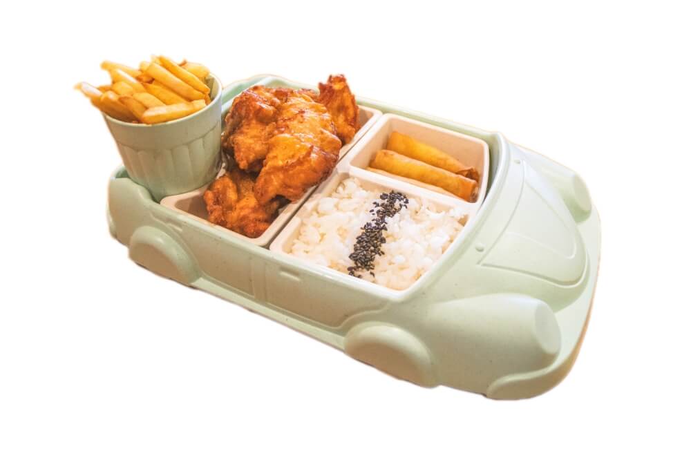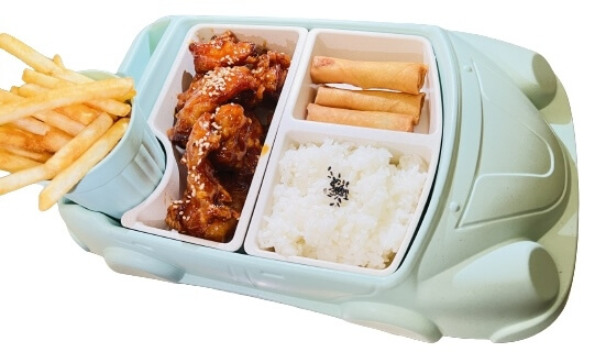 Deep fried chicken, chips, spring roll 3pcs, rice