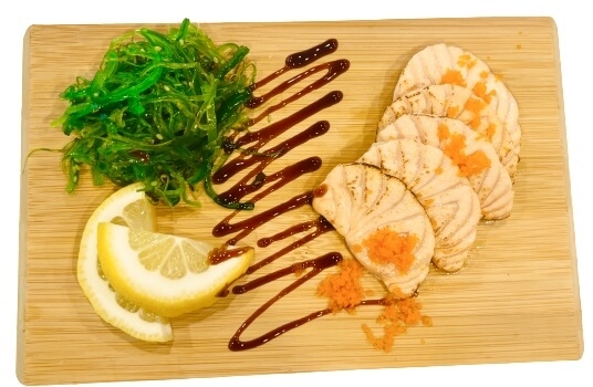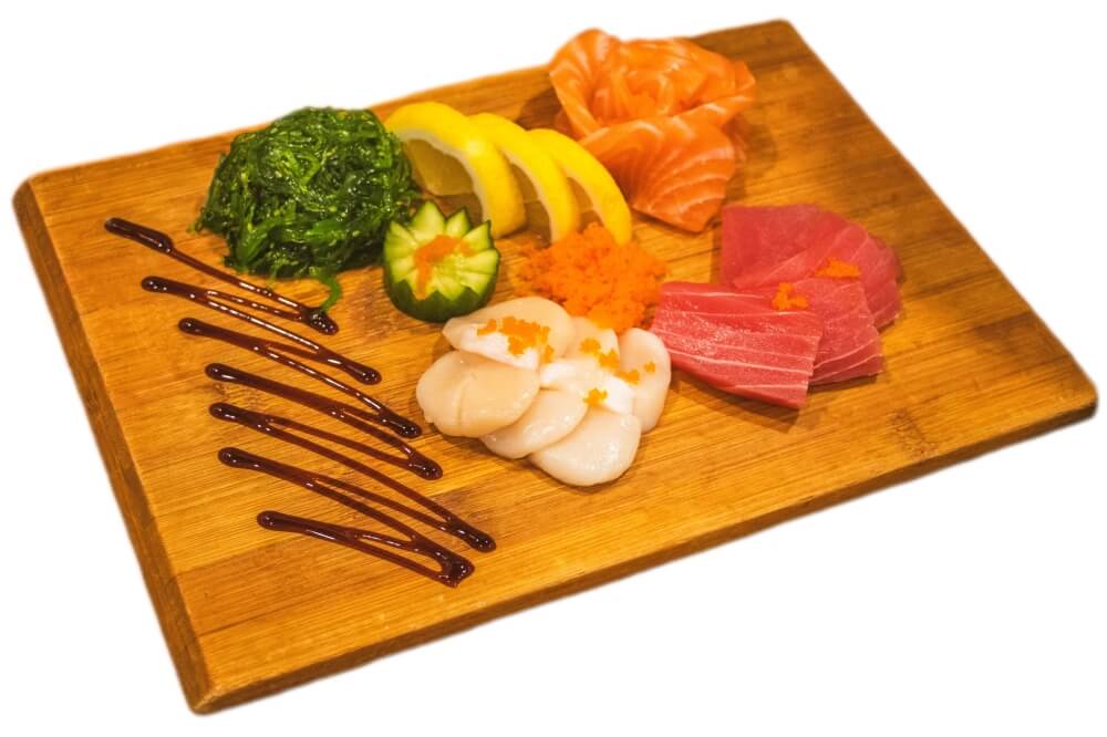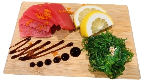 Salmon nigiri 3pcs, tuna nigiri 3pcs, salmon & tuna sashimi 3pcs each