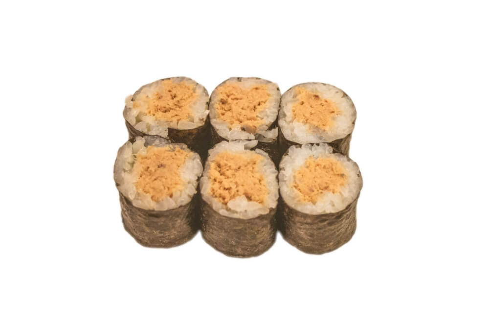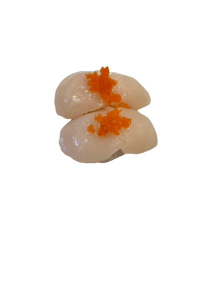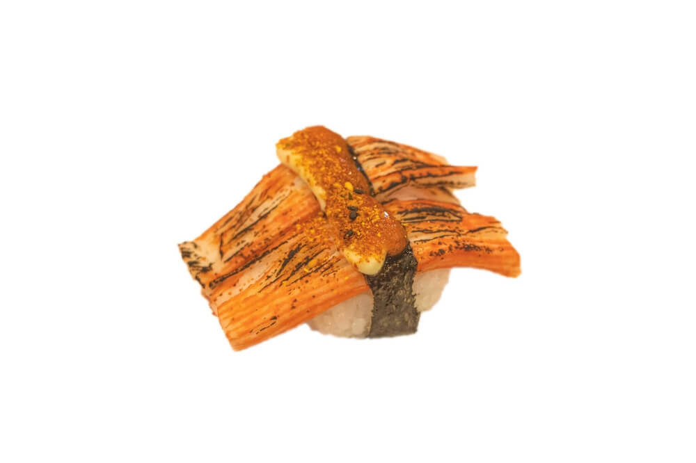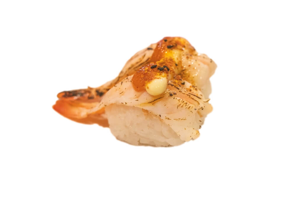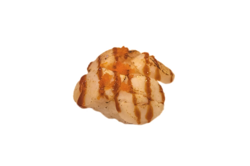 Volcano roll 8pcs - prawn, crab and avocado topped with scallop, spicy sauce + Nigiri 8pcs - cooked salmon 2pcs, spicy prawn 2pcs, scallop 2pcs, spicy crab 2pcs