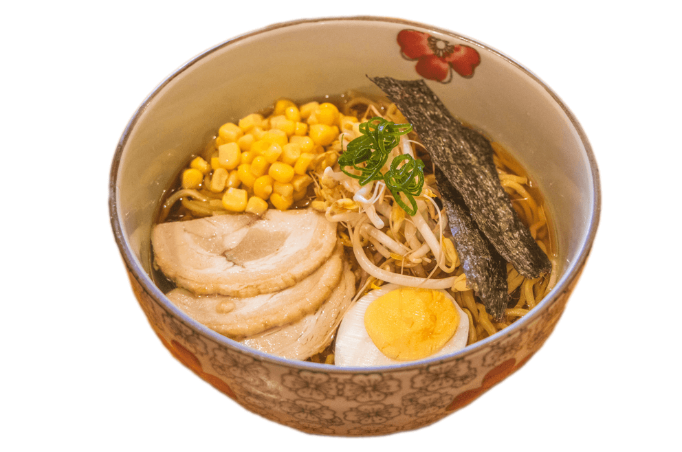 Japanese egg noodle soup with pork, bean sprouts and eggs